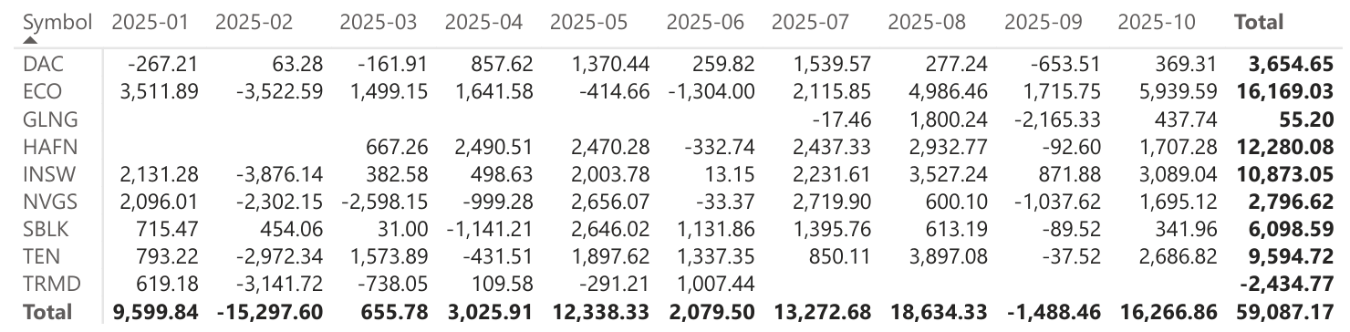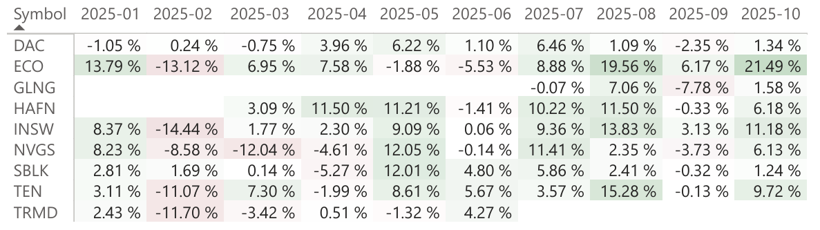 The tanker thesis is finally starting to play out again, and valuations in the sector still look very attractive. I am keeping the portfolio unchanged for now, as the current picks continue to perform well and we are only midway through November.